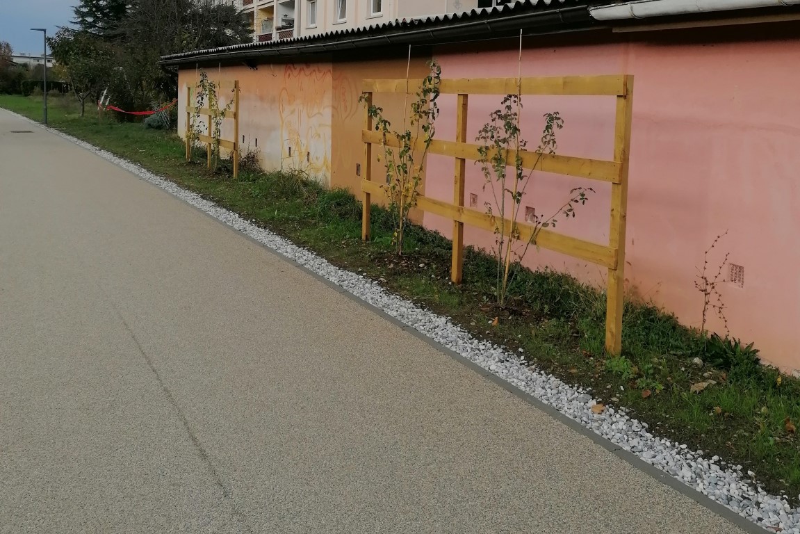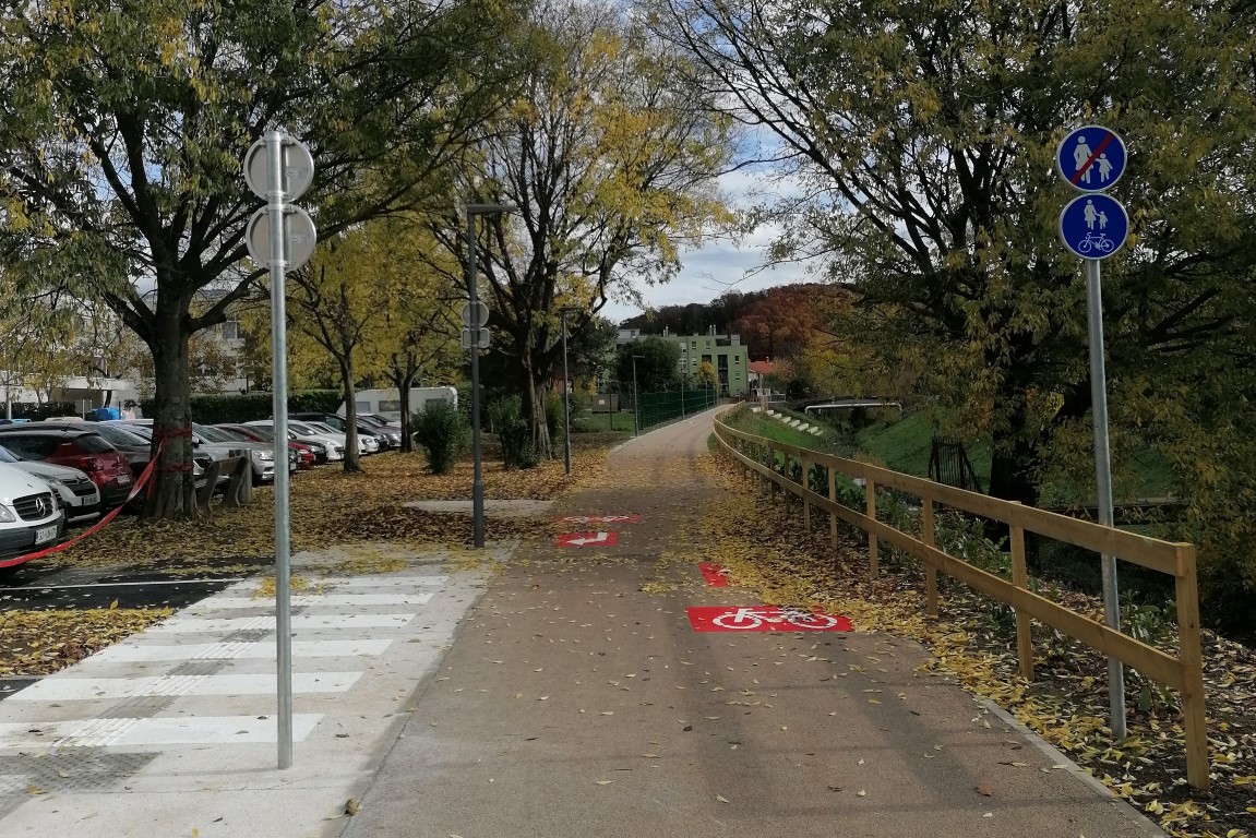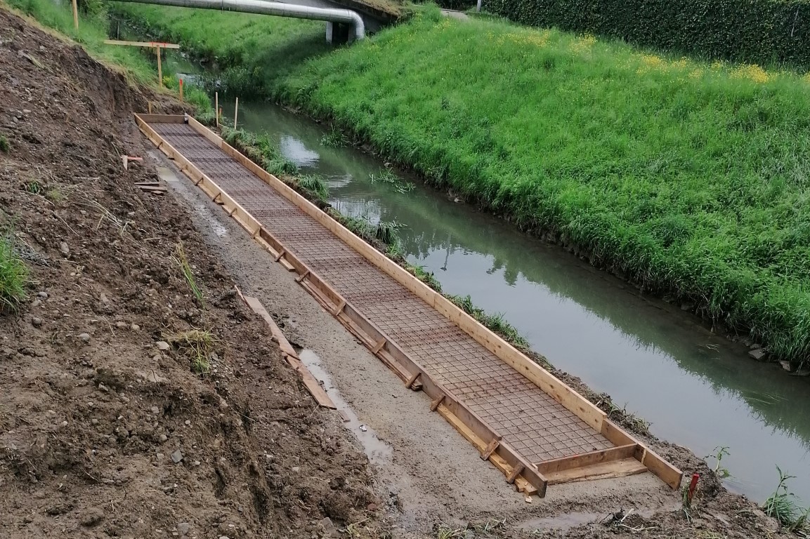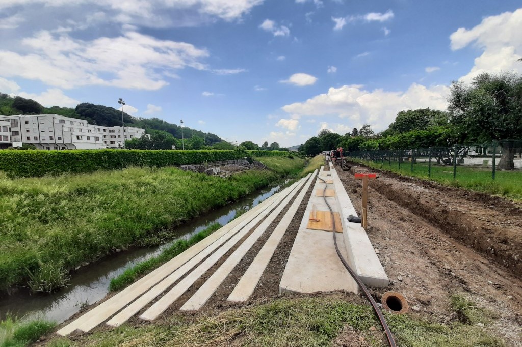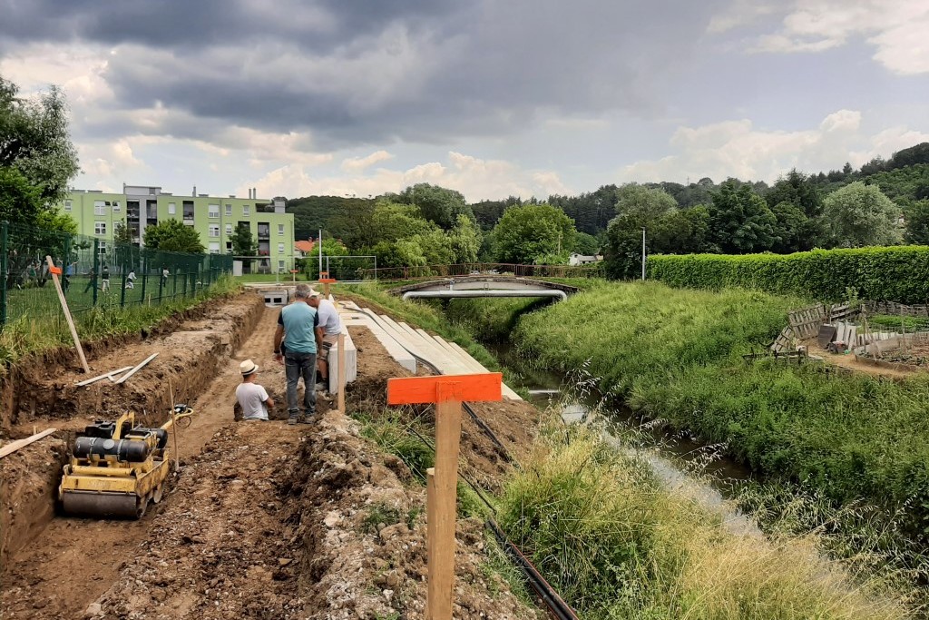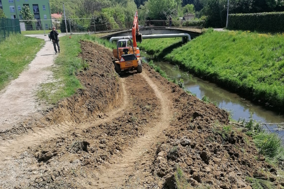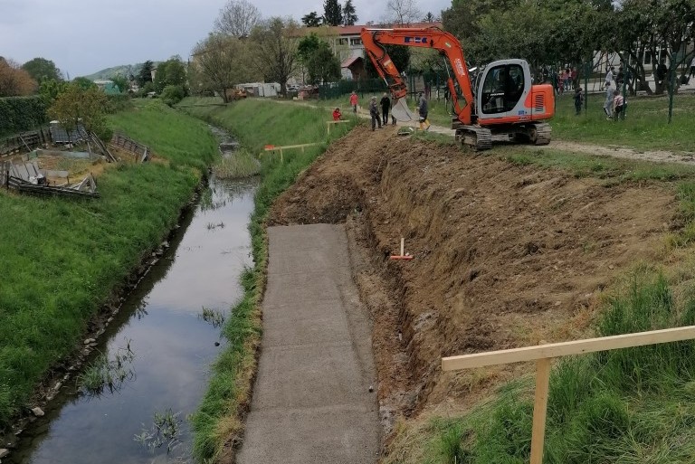 Dela v prvi fazi zajemajo ureditev tri metre široke poti, ureditev odvodnjavanja ter postavitev klopi in usmerjene javne razsvetljave. Dela zajemajo tudi sanacijo nabrežja pri Osnovni šoli Frana Erjavca, ki bo urejeno s pohodnimi terasami. To bo omogočalo posedanje, počivanje in druženje ob potoku. Poseg ne bo spremenil hidroloških značilnosti struge. Druga faza prav tako zajema ureditev poti in odvodnjavanja ter postavitev klopi in javne razsvetljave. (Vir: Mestna občina Nova Gorica)